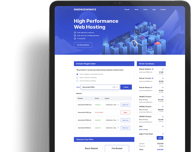 Deliver a seamless, conversion-optimized buying experience. Our One Page Checkout for WHMCS streamlines the entire process from domain selection to payment all on a single, high-performance page.
