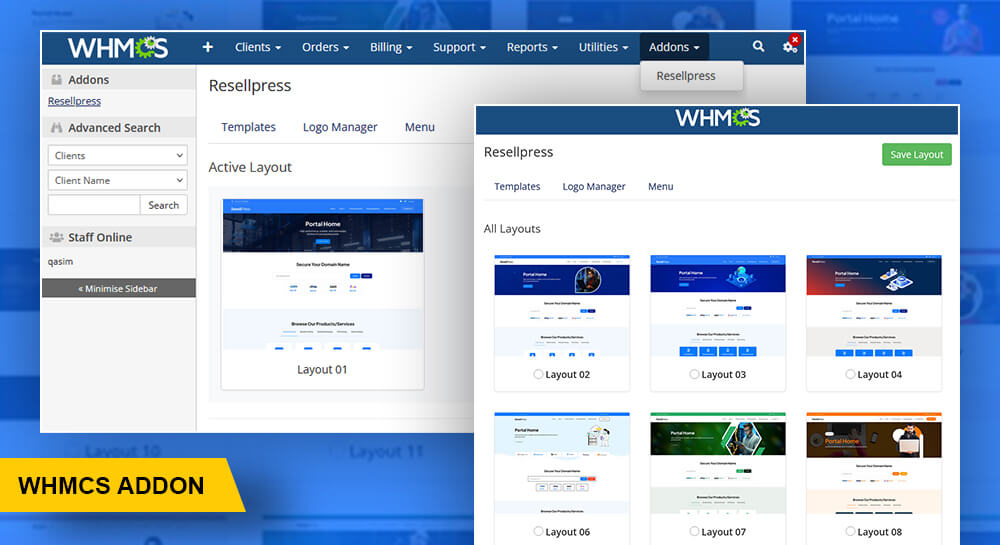 Empower yourself with Layout Manager. Instantly switch ResellPress layouts with just one click. Enjoy an automatic hassle-free way to customize the look and feel of your clientarea with no coding required.
